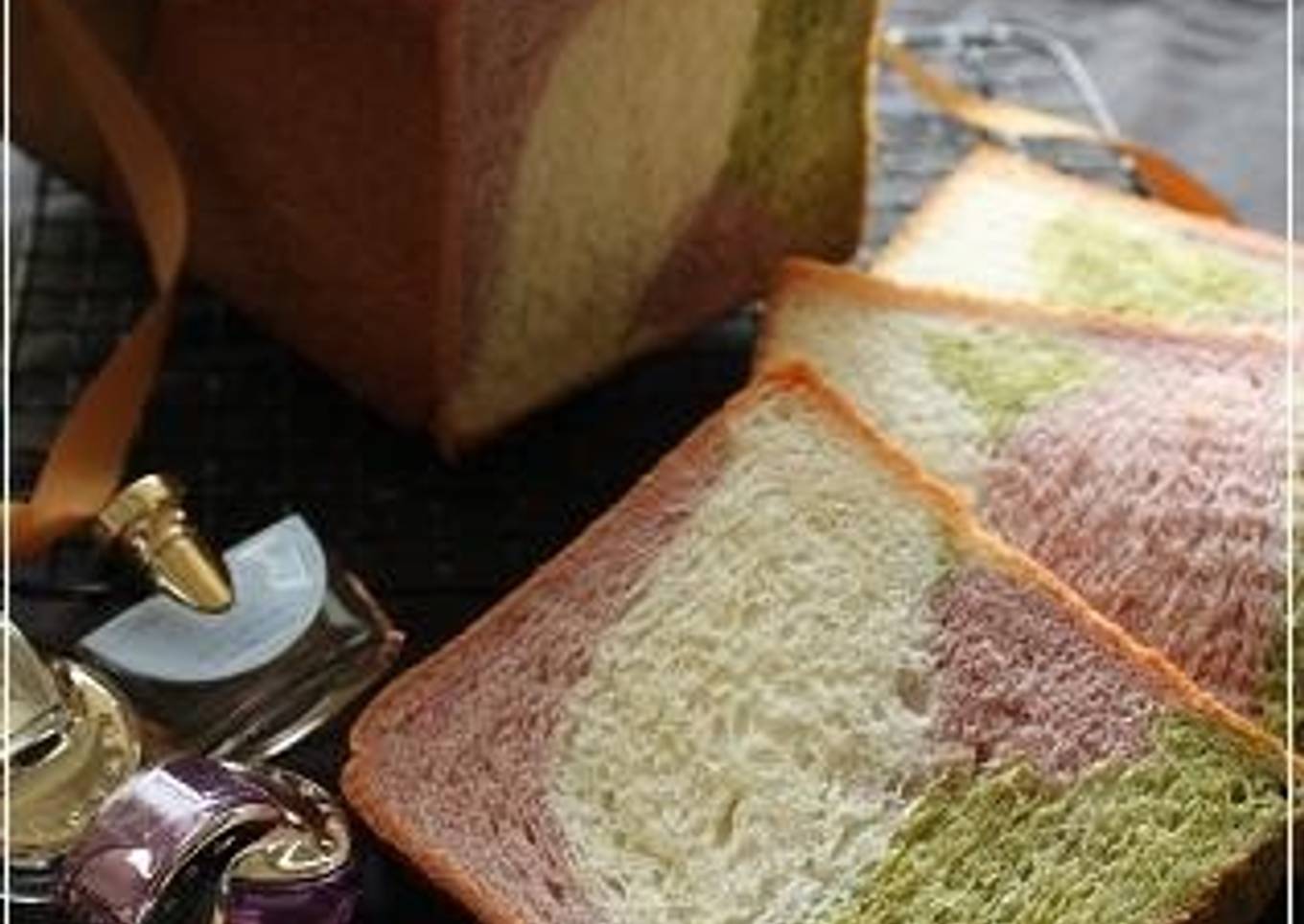 I was thinking of baking a Pullman loaf, good for a gift, and the I saw the beautiful color of the "Kyoto Sanshoku". I came up with the idea to change the strawberry dough to purple potato dough, and I baked the bread with the ingredients on hand.
