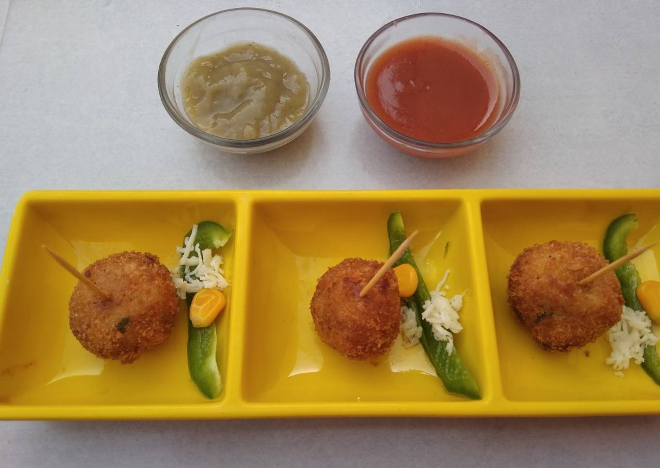 - Tasty and mouthwatering cheese balls/lolipops are ready serve with cheese,corn,capsicum.
