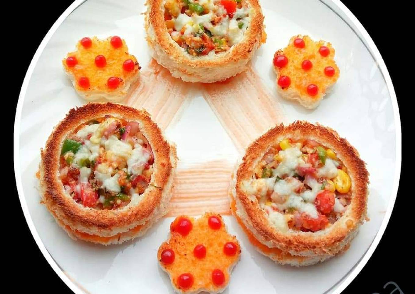 - Using a big round cookie cutter, cut roundels from the bread slices.