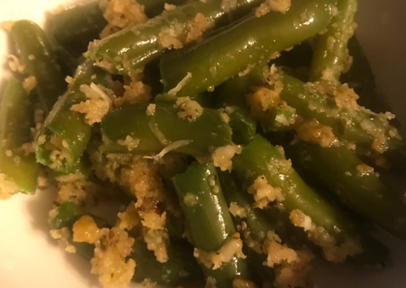 - Place beans in a medium serving bowl, and mix in bread crumbs, olive oil, salt, pepper, garlic powder, oregano and basil.