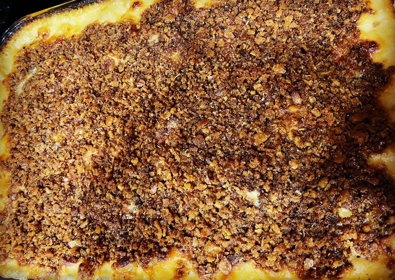 - Melt butter or margarine in a skillet over medium heat. Add breadcrumbs and brown. Spread over the macaroni and cheese to cover. Sprinkle with a little paprika.