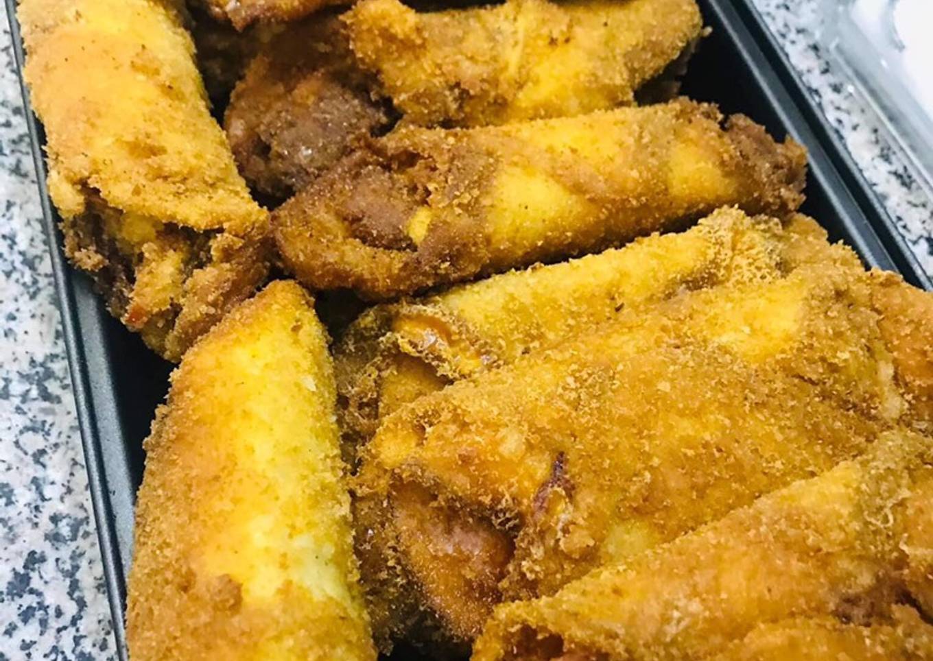- Get each piece of the loaf bread and flattened it using rolling pin
