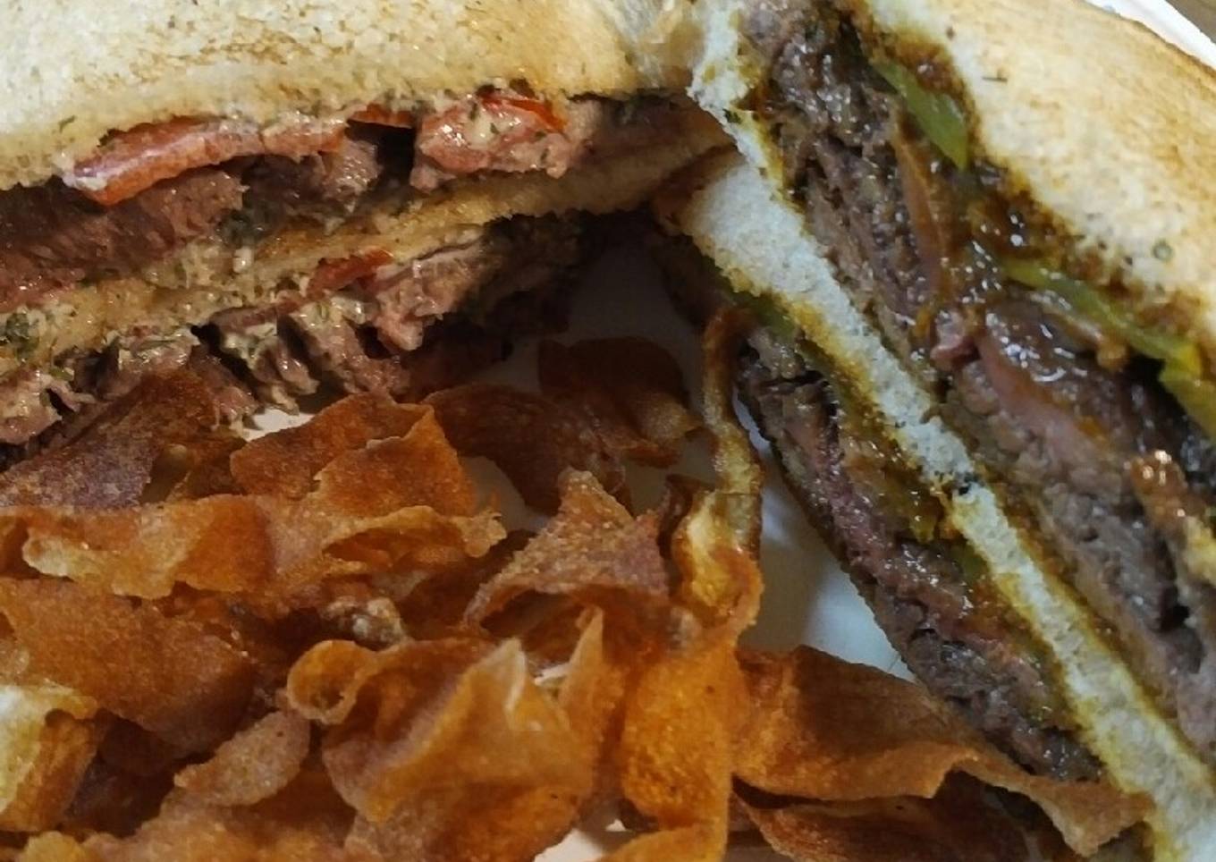- Stack the beef and tomatoes on this sandwich. Assemble these sandwiches.