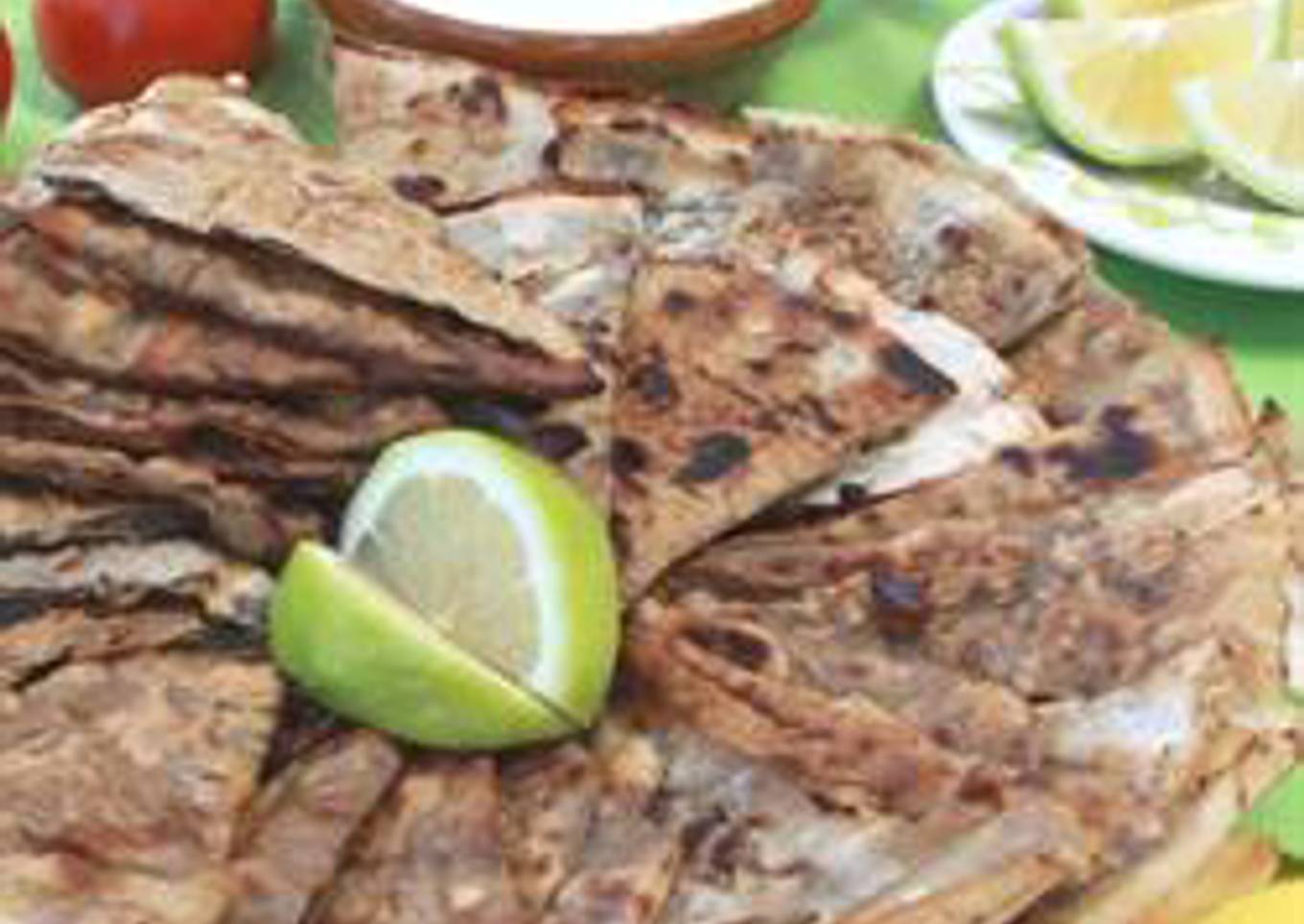 Kafta is made of ground meat mixed with chopped parsley and onions. In this recipe, the mixture is spread between two layers of pita bread and grilled until the bread becomes brown. Cut in triangles and serve.
